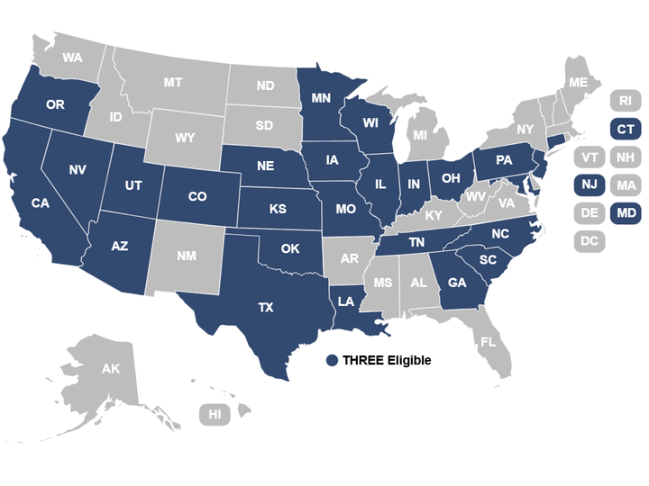 THREE can accommodate multiple locations, but only within a single state — THREE cannot accommodate insureds with locations across multiple states.